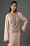 Featuring a stone-colored kaftan in dola silk base with embroidery. Accentuate it with statement jewellery and heels for a festive occasion or sangeet ceremony.