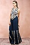 Payal Singhal features a mesmerising Teal Blue Sharara Set. Adorned with exquisite embroidery, the designer sharara set will be a perfect fit for weddings and festive occasions. The teal blue choli is crafted in georgette with applique detailing. It comes with matching sharara pants.