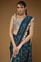 Featuring a teal blue bandhani saree in silk base. It is paired with a georgette hand embroidered bustier. The timeless design of this saree will add a festive touch to any occasion.