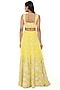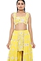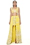 Featuring a yellow skirt in georgette base with embroidery. It is paired with a matching top and a mukaish net dupatta.