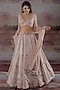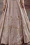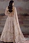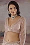 Featuring a dusty pink blouse in net base with applique embroidery. It is paired with a matching whiteout lehenga and a dupatta.