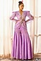 Featuring a lilac top in crepe and organza base with hand embroidery. It is paired with flared pants. Accentuate it with stud earrings and heels for a complete look.