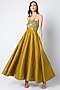 Featuring a mustard gown in chanderi silk base with embroidery.