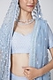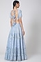 Featuring a powder blue kalidar lehenga in gajji silk base with sequins embroidery. It is paired with a matching blouse and two tulle embroidered dupattas.
