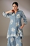 Featuring a blue tunic in handloom cotton base with thread embroidery. It is paired with a slip. Accentuate it with statement earrings and heels for a complete look.
