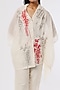 Featuring an ecru cape in handloom cotton base with thread embroidery. It is paired with matching pants. Style it with minimal jewellery and heels for festive wear or family gatherings.