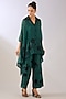 Emerald Green & Black Silk Organza Thread Embroidered Pants
