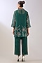 Featuring an emerald green jacket in silk organza base with beads embroidery. It is paired with a slip. Accentuate it with pants, stud earrings, mules and a clutch for festive occasion, pooja or cultural celebrations.