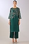 Featuring an emerald green kurta in silk organza and silk satin base with beads embroidery. It is paired with a slip. Accentuate it with pants, stud earrings, mules and a clutch for festive occasion, pooja or cultural celebrations.
