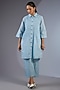 Featuring an ice blue handloom shirt-style kurta in cotton base. Style it with pants, minimal jewellery and flats for a casual look.