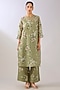 Featuring a jade green kurta in silk organza base with thread embroidery. It is paired with a slip. Accentuate it with pants, stud earrings, mules and a clutch for festive occasion, pooja or cultural celebrations.