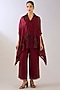Featuring a ruby red cape in silk organza and silk satin base with beads embroidery. Accentuate it with pants, stud earrings, mules and a clutch for festive occasion, pooja or cultural celebrations.