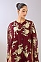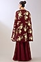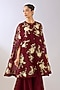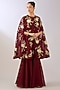 Featuring a ruby red cape in silk organza base with thread embroidery. Accentuate it with pants, stud earrings, mules and a clutch for festive occasion, pooja or cultural celebrations.