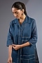 Featuring a space blue handloom shirt style kurta in cotton base. It is paired with a slip. Style it with pants, minimal jewellery and flats for a festive look.