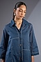 Featuring a space blue handloom shirt in cotton base. It is paired with a slip. Style it with pants, minimal jewellery and flats for a casual look.