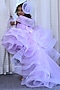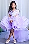 Featuring a lavender structured dress for girls in butterfly net, satin and shantoon base with embellishments, a round neck, ruffles and frills detail, including a back zip closure. It is paired with a detachable drape. Style it with sandals and hair accessories for a festive occasion or birthday party celebration.
