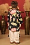 Featuring a navy blue kurta for boys in cotton base with lotus print and patch pockets. It is paired with white pants having elasticated waist. Style it up with a classic pair of mojaris for festive occasions or rakhi celebrations.
