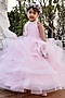 Peach Butterfly Net Floral Embellished Frilled Gown For Girls