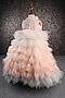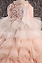 Peach & White Butterfly Net Applique Gown For Girls