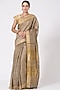 Featuring a dark beige saree in kosa silk and zari base. It is paired with a matching unstiched blouse piece.