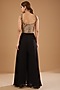 Featuring black sharara pants in georgette base. It is paired with a contrasting gold gota blouse.
