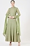 Featuring a pista green anarkali in a georgette and net base with zari work. It is paired with a matching dupatta.