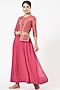 Featuring a rani pink lehenga in georgette base with an attached belt. It is paired with a blouse having zardosi and pearl work, including a dupatta. Accentuate it with zircon jewellery and heels for a wedding or sangeet ceremony.