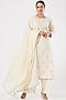 Featuring a white kurta in cotton jacquard base with aari embroidery. It is paired with matching mulmul pants and a dupatta.