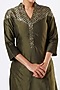 Featuring an olive green kurta in cotton silk base with brocade detailing. It is paired with matching organza palazzo pants.
