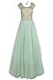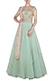 Featuring an ice blue hand embroidered gown in rawsilk and malmal base.