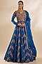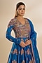 Featuring a blue kalidar anarkali in chanderi and organza base with embroidery. It is paired with a dupatta. Accentuate it with kundan jewellery and wedges for a festive look or a wedding ceremony.