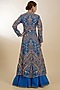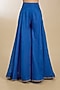 Featuring a blue jacket in chanderi and organza base with velvet patchwork aari embroidery. It is paired with an inner and sharara pants. Accentuate it with pearl drop earrings and embroidered wedges for a stylish ensemble, ideal for engagement ceremonies or sangeet nights.