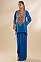 Featuring a blue short kurta in dupion silk base with a velvet patchwork. It is paired with a draped skirt. Accentuate it with kundan jewellery and wedges for a festive look or a wedding ceremony.