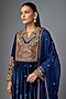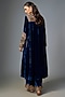Blue Velvet Embroidered Front Gathered Kurta Set