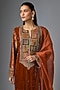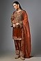 Elevate your festive wardrobe with this gorgeous rust short kurta, elegantly crafted in luxurious velvet and adorned with brocade sleeves. This beautiful ensemble comes with a matching salwar and a delicate organza dupatta. Style it up by pairing with statement jewellery, a chic clutch, and heels to create a head-turning look that's perfect for wedding celebrations.