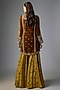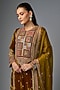 Elevate your festive wardrobe with this gorgeous champagne short kurta, elegantly crafted in luxurious velvet adorned with work. This beautiful ensemble comes with a contrasting brocade sharara and a delicate organza dupatta. Style it up by pairing with statement jewellery, a chic clutch, and heels to create a head-turning look that's perfect for wedding celebrations.