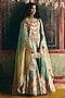 Featuring a cyan kurta in brocade, chanderi and organza base with patchwork. It is paired with sharara pants having patchwork and a dupatta. Accentuate it with statement earrings and heels for a festive occasion or sangeet ceremony.