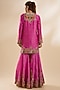 Featuring a fuchsia pink kurta in chanderi silk base with embroidery. It is paired with a sharara and a dupatta. Accentuate it with kundan jewellery and wedges for a festive look or a wedding ceremony.