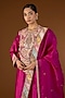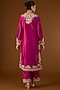 Featuring a fuchsia pink straight kurta in brocade base with patchwork. It is paired with pants and a dupatta. Accentuate it with statement earrings and heels for a festive occasion.
