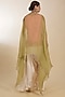 Featuring a gulaal pink short jacket in chanderi base with mughal patchwork. It is paired with an organza cape and satin a dhoti. Accentuate it with statement hoops and embroidered juttis for a stylish ensemble, ideal for festive brunches or mehendi functions.