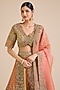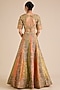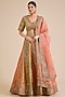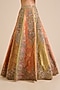 Featuring a multi-colored lehenga in chanderi brocade base. It is paired with a blouse and an organza dupatta. Accentuate the designer lehenga with swarovski jewellery, embellished heels and a clutch for a regal look, Perfect wear for your sangeet or wedding ceremony.