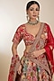 Featuring a multi-colored lehenga in chanderi and organza base with velvet patchwork embroidery. It is paired with a blouse and a dupatta. Accentuate it with a chunky kundan choker set and embellished heels for a lively festive look, ideal for sangeet nights or destination wedding celebrations.