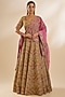 Featuring a mustard lehenga in raw silk base with embroidery and mulmul lining. It is paired with a blouse and an organza dupatta. Accentuate it with kundan jewellery and wedges for a festive look or a wedding ceremony.