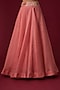 Featuring a pink cape in organza base. It is paired with a matching chanderi blouse and an organza skirt.