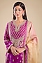 Featuring a pink kurta in shimmer brocade chanderi base with brocade panels, including hand and machine embroidery. It is paired with chanderi salwar pants and an organza dupatta. Accentuate it with statement earrings and block heels for festive ceremonies.