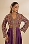 Featuring a purple kalidar asymmetrical kurta in chanderi silk base with embroidery. It is paired with pants. Accentuate it with kundan jewellery and wedges for a festive look or a wedding ceremony.