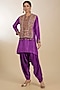Featuring a purple kurta in dupion and satin base with hand and machine embroidery. It is paired with a dhoti. Accentuate it with oxidised jhumkas and a woven jutti for a stylish ensemble, ideal for festive occasions or family get-togethers.