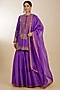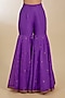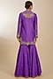 Featuring a purple short kurta in organza and chanderi base with hand and machine embroidery. It is paired with sharara pants and a dupatta. Accentuate it with kundan jhumkas and embroidered juttis for a stylish ensemble, ideal for festive functions or wedding celebrations.