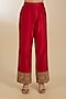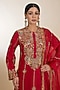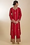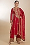 Featuring a red kurta in chanderi base with hand and machine embroidery. It is paired with pants and an organza dupatta. Accentuate it with silver jhumkas and embroidered juttis for a stylish ensemble, ideal for festive occasions or pooja ceremony.