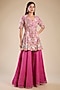 Featuring a rose pink peplum kurta in chanderi, brocade and organza base with hand and machine embroidery, including patchwork. It is paired with pants. Accentuate it with statement earrings and block heels for festive ceremonies.